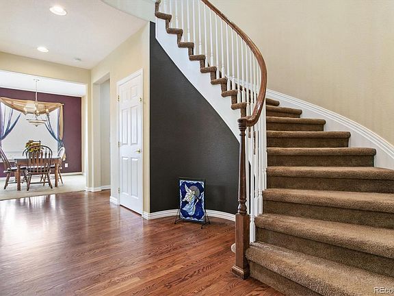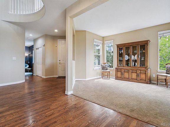 ~ This home is perfectly located in the desirable Firelight neighborhood to enjoy stunning views from Denver Tech Center to the Mountains throughout the year - from snow fall to fireworks ~ The home has plenty of space to accommodate your current needs with 4 bedrooms and 3 full bathrooms, plus a full walk out basement ready for your dream finish ~ The spacious entry welcomes you with an elegant curved staircase, into the open Living Room and Dining Room ~ The views are evident immediately in these spaces which are light-filled and defined without being closed off ~ There is a convenient main floor office off the entry, adjacent to a 3/4 guest bath, which could be used as a den, or converted into an additional bedroom ~ The hardwood floors lead through to the integrated Kitchen and Family Room ~ This open space makes the most of the views, which can also be seen from the kitchen ~ Tastefully equipped with plenty of cabinets, newer appliances, an island and loads of counter space, the kitchen is a comfortable space to prepare meals ~ Entertaining is easy with great flow into the family room which includes a gas fireplace and access to the deck ~ A separate laundry room and mudroom space are convenient to the kitchen and garage access ~ Upstairs, double doors welcome you into the Primary Bedroom Suite with its wall of windows ~ The Bedroom is spacious and has an attached retreat for a work space, exercise equipment or to relax with a good book ~ There are three additional bedrooms on the upper floor, each with  large windows and roomy closets, and a full bath ~ Recent updates include: New furnace & A/C, cooktop, double ovens, and garage doors ~ The fully fenced back yard includes a patio space perfect for a table or seating area, and is accessible from the deck ~ The expansive basement gets great natural light and could be finished in a variety of configurations ~ This neighborhood is walkable to trails, parks, rec center and shopping ~ Set a showing today!