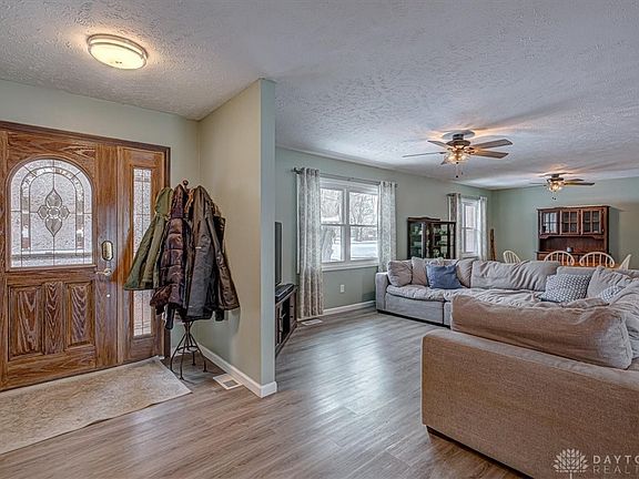 This stunning tri-level home offers 3 bedrooms, 2.5 baths, and a thoughtfully designed layout that’s sure to impress. From the moment you step through the gorgeous front door with its beveled glass insert, you’ll feel right at home. The open great room is the heart of the house, featuring a striking fireplace, built-in shelving, and plenty of natural light—perfect for entertaining or relaxing. The lower-level family room provides endless possibilities, whether you envision it as a cozy retreat or a lively entertainment hub. There’s even a large bonus space in the back, ideal for hosting holiday games or creating a recreation area to suit your needs. The kitchen is a chef’s dream, boasting granite countertops, a stylish tile backsplash, a center island, and stainless steel appliances. Every bedroom features a walk-in closet, ensuring plenty of storage for everyone. Updates include windows, doors, and flooring throughout, ensuring a modern and move-in-ready feel. An additional outbuilding/garage provides extra storage space for your tools, toys, or hobbies. Located in a prime area close to dining, shopping, and with easy access to I-75 and I-70, this home combines convenience with comfort. Don't miss the chance to make it yours!