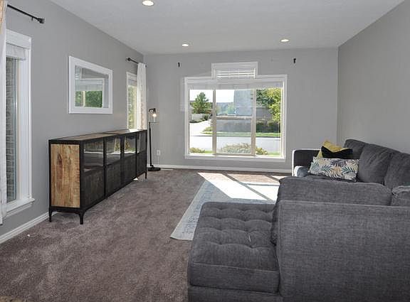 You will love this charming move-in ready home in the East Lake Village of Daybreak. Super clean and well maintained two story with 4 bedrooms, 3 bathrooms, formal dining room, great room and bonus family room in basement. Hardwood floors on main and brand-new carpet throughout, new furnace and water heater. Multiple upgrades in kitchen: granite countertops, stainless steel appliances, refrigerator included, island with breakfast bar and pantry. Owner's suite features two walk-in closets, double sink vanity, separate oversized garden tub and shower. Large laundry room upstairs with work space and storage cabinets. Excellent location next to elementary school with all the fabulous Daybreak amenities! Please remove shoes or wear shoe covers provided. Buyer to verify all information.