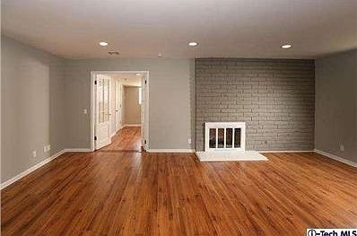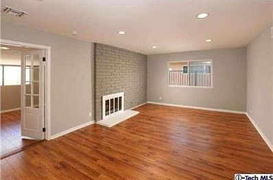 This home has been beautifully remodeled with a double door entry, all new flooring and decorator paint through out. Formal living and dining room area with laminate wood flooring, recessed lighting and a brick fireplace. The kitchen was remodeled with gorgeous cabinets, granite counter tops, stainless appliances and tile floors. There is a separate family room with laminate wood floors and a cozy fireplace. The Master bedroom has new carpet and an attached master bath with a nicely tiles stall shower. The secondary bathroom is updated with new vanity, tile flooring, new lighting and plumbing fixtures. There is a laundry area located inside the property. The front and backyard have been nicely landscaped and the backyard has a great concrete patio area off the back of the property.