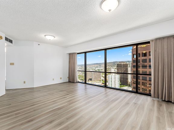 NEW LISTING!! Experience urban living at its best in this 1-bedroom, 1-bath unit at the Executive Centre in the heart of Downtown Honolulu. This spacious 616 sq. ft. residence features fresh interior paint, stylish vinyl plank flooring, and floor-to-ceiling windows that fill the space with natural light while offering beautiful city and mountain views. Enjoy the comfort of central AC and the convenience of an in-unit washer/dryer. Includes one covered parking stall. Centrally located near restaurants, shops, and entertainment. Don’t miss this fantastic opportunity! 3 Photos have been virtually staged(enhanced).