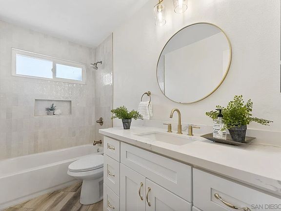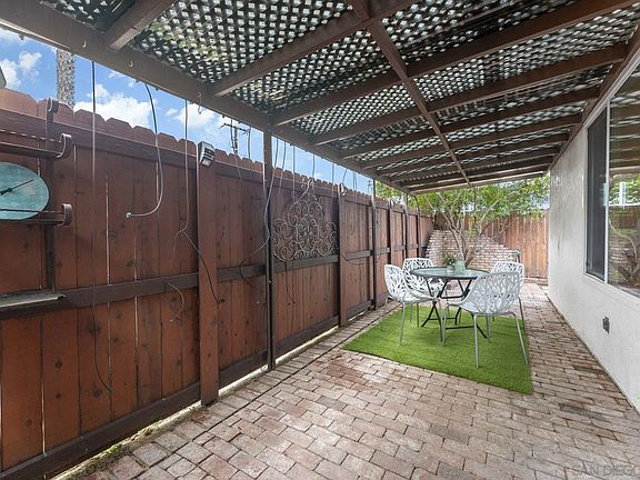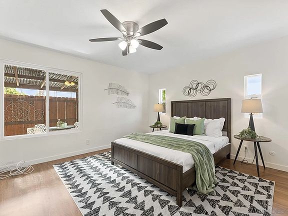 Move-In Ready Home in a Sought-after Single-Story Community! Welcome to Bostonia Gardens, a beautifully landscaped and peaceful enclave of just ten single-story homes. This charming and meticulously maintained residence blends comfort, style, and convenience in one inviting package. Step into a bright and open living area featuring luxury vinyl plank flooring, recessed lighting, and a large window with serene views of the community greenery. The spacious kitchen impresses with extended quartz countertops that double as a dining bar, matching white appliances (including refrigerator, electric stove, microwave, and dishwasher), a double sink, and tranquil views. The freshly renovated bathroom showcases stylish tile finishes, quartz counters, and a modern vanity. Enjoy seamless indoor-outdoor living with a large wraparound private patio, perfect for relaxing, gardening, or entertaining. A dedicated garden area and oversized exterior storage closet add to the home’s functionality. Additional highlights include dual-pane windows, newer A/C and water heater, and an attached one-car garage with built-in storage. Ideally located on a quiet cul-de-sac street, just minutes from the freeway, shopping, and restaurants, offering the best of convenience and comfort in a private gated setting.
