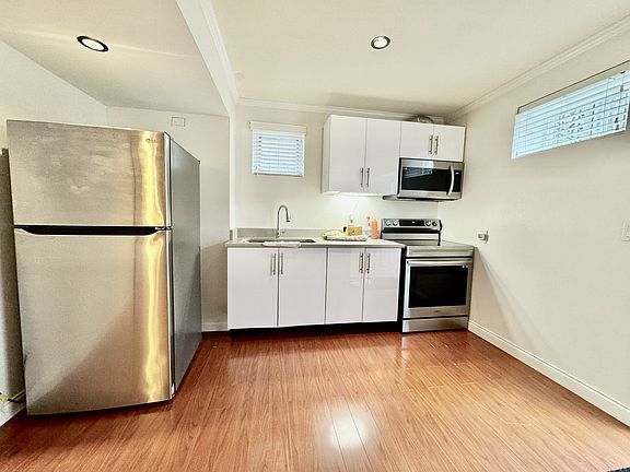 This suite is located on a hill and sloped down in the front and high in the back. The suite has lots of natural light as it faces west. The entrance is on the backside of the home. Well cared for this home has two VERY large bedrooms, functional Kitchen, Nice bathroom, dining and living room. Appliances are stainless steel and comes with built in microwave. Showings Available upon request and available for self booking through our showing coordinator.
