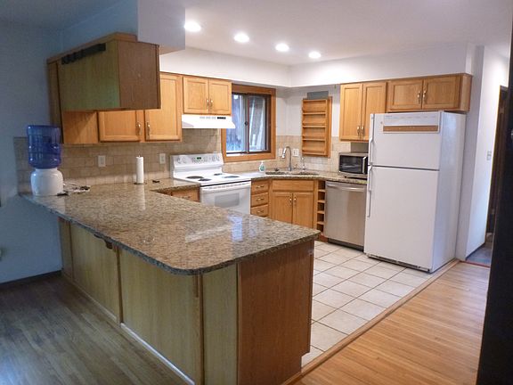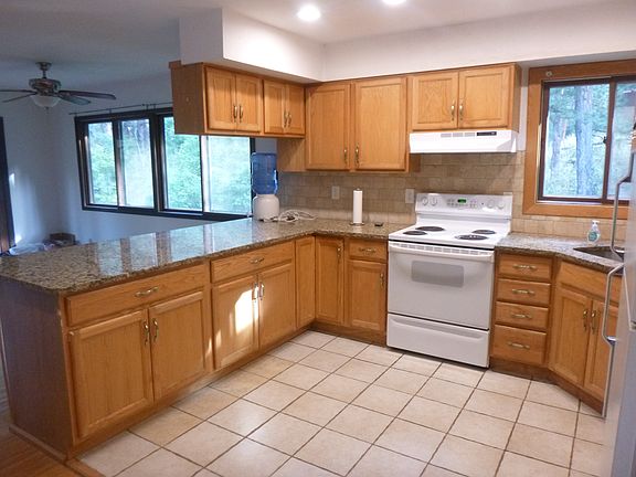 Oak wood floors and tile throughout. Large granite countertop in kitchen. One car detached garage and room for parking three more vehicles. Paved road access. Fully finished walkout basement with large rec room, fourth bedroom, separate bath, laundry room, partial second kitchen and fireplace. Wood burning stove located in living room. Attached sunroom/greenhouse and water softener. Oversized attic which can store a large amount of items.