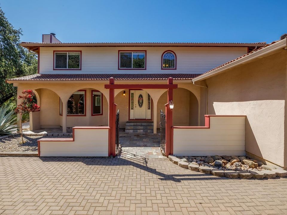 Discover this stunning Spanish-style home featuring five bedrooms and three bathrooms, located in the Palomino Lakes community in the heart of Northern California's wine country. The property boasts a paver driveway and a formal living room with a fireplace. Step up to the elegant formal dining area and enjoy the open kitchen, featuring granite tile countertops, a counter with seating, and a breakfast nook. The family room, also with a fireplace, is perfect for cozy, rainy days and opens to a lovely deck through sliding glass doors. On the main floor, you will find one bedroom, a bathroom, and laundry. The primary bedroom, situated on the second floor, features its own private deck and an en-suite bathroom with a jetted tub and shower. Additionally, it features an office/den with direct access to the deck, as well as three bedrooms. Enjoy the comfort and charm of this beautiful home!