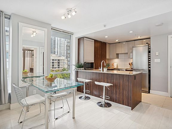 Bright 1 bed+ den corner home at Richards Living, on a charming tree-lined street in vibrant Yaletown. Sun-filled wrap-around windows frame city views, with an open layout, gourmet kitchen perfect for entertaining and a den that is well suited for a home office. No neighbour above this unit as it is situated directly under the rooftop garden for a peaceful escape. Enjoy a fully equipped gym, bike lanes, SkyTrain, shops, dining, parks, and an off-leash dog park just steps away. Pet-friendly, well-run building with low strata fees, 1 parking & 1 large storage included-perfect for urban living with your furry friend. OPEN HOUSE 2-4 SUNDAY OCTOBER 5TH