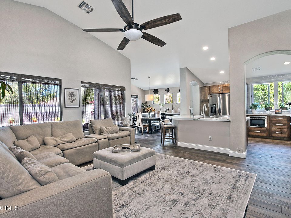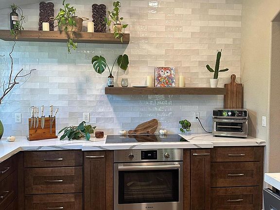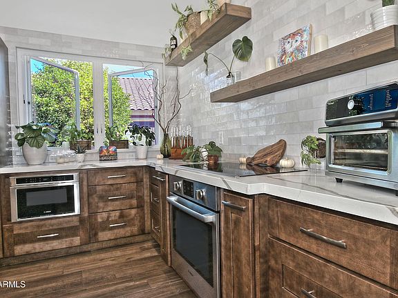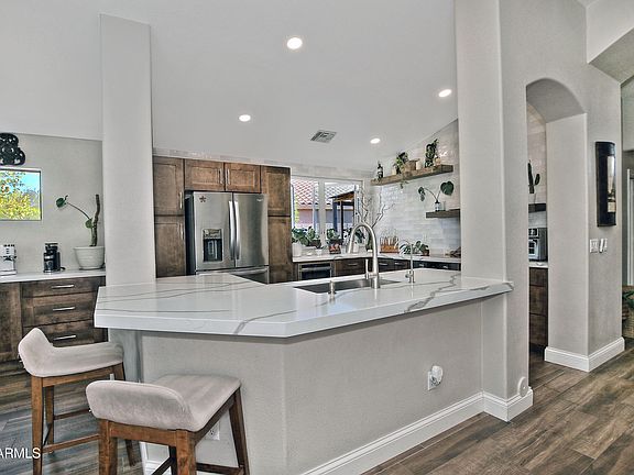 NEW HOME FEEL IN THE HEART OF GILBERT! THIS 3 BEDROOM + DEN HOME IS A BEAUTIFUL REMODEL, OVER $100,000 IN THE LAST 6 YEARS HAS TRANSFORMED THIS 2001 HOME INTO A MODERN ONE. EXCELLENT LOCATION -10 MINS TO DOWNTOWN GILBERT AND SAN TAN MALL. UPGRADES INCLUDE: COMPLETELY REMODELED KITCHEN WITH QUARTZ COUNTERTOPS, CUSTOM CABINETS W/SLIDE-OUT DRAWERS, 36'' INDUCTION COOKTOP, R/O SYSTEM AND HUGE CASEMENT WINDOW. MASTER BEDROOM AND BATHROOM REMODELED IN 2019 - JETTED TUB, WALK-IN SHOWER, CUSTOM CABINETS, WOOD-LOOK TILE FLOORS, UPDATED BASEBOARDS AND CROWN MOLDING. 2ND BATHROOM REMODELED IN 2022 - TILED WALK-IN SHOWER AND CUSTOM CABINETS. SECOND BEDROOM COMPLETE WITH A MURPHY BED AND CUSTOM CLOSET. 3RD BEDROOM HAS A CUSTOM CLOSET AND A CUSTOM PET PATIO, 4TH BEDROOM IS A DEN THAT OPENS TO THE FAMILY ROOM. VERY OPEN FLOORPLAN WITH CUSTOM ENTERTAINMENT AREA, VAULTED CEILINGS AND CUSTOM PAINT. DINING ROOM HAS BUILT-IN CABINETS - GREAT FOR STORAGE AND THAT PERFECT COFFEE BAR! LARGE PRIVATE BACKYARD WITH A SPARKLING POOL, EXTENDED PATIO AND TURF. OTHER UPGRADES INCLUDE OWNED SOLAR SYSTEM (2020) AND A OWNED WHOLE HOUSE LIFESOURCE WATER SYSTEM (2024). HVAC REPLACED IN 2017! THIS HOME IS A MUST SEE!