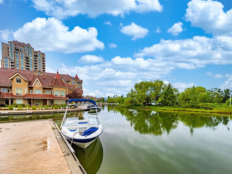 Two private decks overlook the bird sanctuary and lush landscaping. Both bathrooms feature heated floors, with the primary ensuite showcasing a spacious walk-in shower.