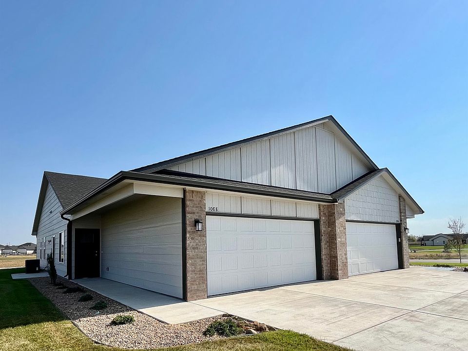 Enjoy relaxing at home in this low maintenance twin home! Open Living / Kitchen / Dining with 3 bedrooms, 2 baths and 2-car garage. Primary bedroom features a walk-in closet and private bath with shower. Granite countertops and stained concrete floors throughout. Zero entry and located on a cul-de-sac. Awesome new Goddard community with neighborhood ponds, park, pool and storm shelter. HOA also includes lawn maintenance, mowing, sprinklers and wells. Close to Goddard schools. Adjacent to Prairie Sunset Trail. Information deemed reliable but not guaranteed, verify school and tax information. Each side is being sold individually for $189,500 or buy both sides for $380,000. Great Investment opportunity!!