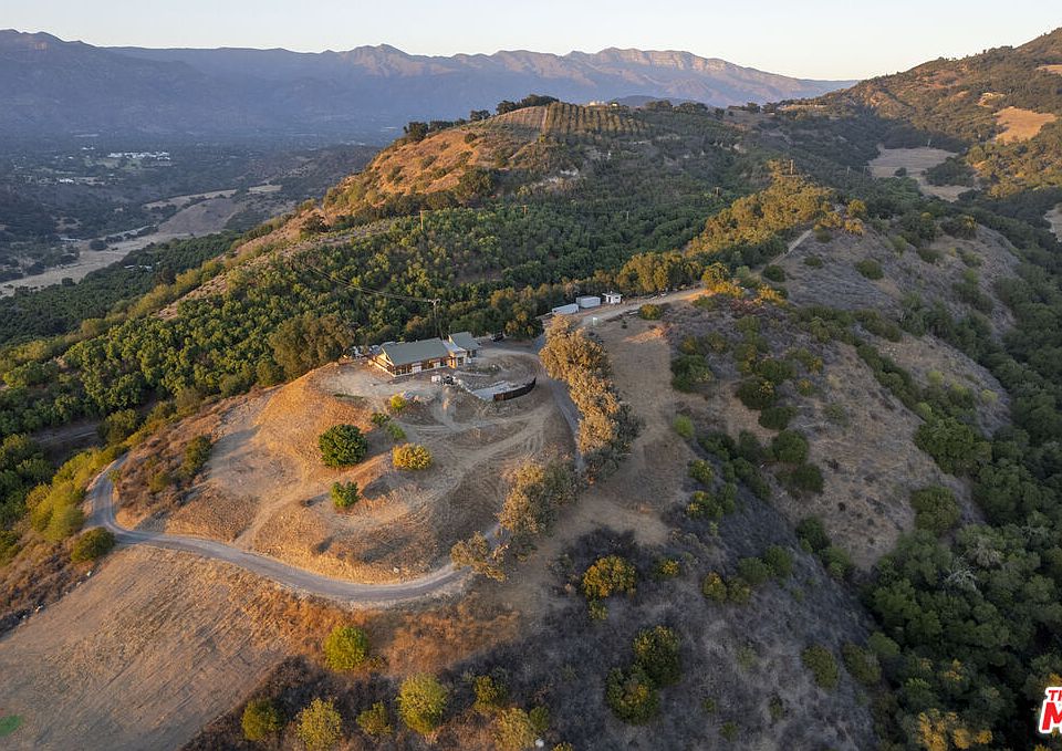 A serene 40-acre private-gated ranch property on the historic Rancho Del Cielo, located just 10 minutes from Downtown Ojai, with 360-degree views of the Ojai Valley, Lake Casitas, and breathtaking hillsides sprinkled with wild flowers, majestic oaks, and citrus agriculture. Situated on the property, with Southwest orientation by design, with views to the infamous Chief Peak mountain range towards Topa Topas sits a thoughtfully designed home, in process of completion, that features new ground up 'Net Zero Bauhaus' architectural fire-resistant construction and insulated with industrial hemp. One foot thick walls, creating a space that is breathable, non-toxic (no mold), regulates humidity, delivers high acoustic value and more. 2,370 SQ FT open floor-plan with 19 foot ceilings throughout, and features 2-bedrooms / 2-bathrooms, custom and dramatic size windows, and 800SQFT deck space with panoramic views. The property also hosts a pond for swimming and to serve as back-up water storage, a golf tee green overlooking the valley, and an environment conducive for vineyards, fruit orchards, lavender, agave, and more. A truly special offering,not often available in one of Califorinia's most majestic settings.