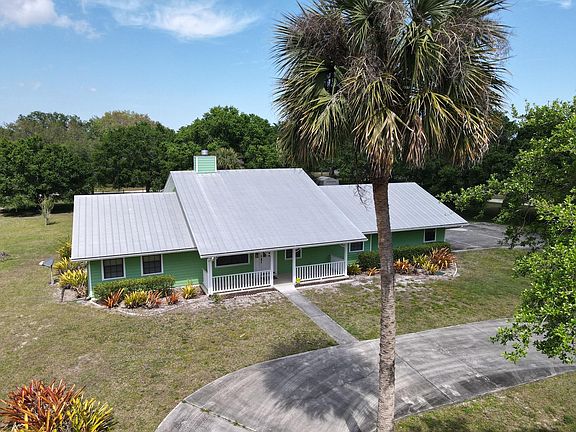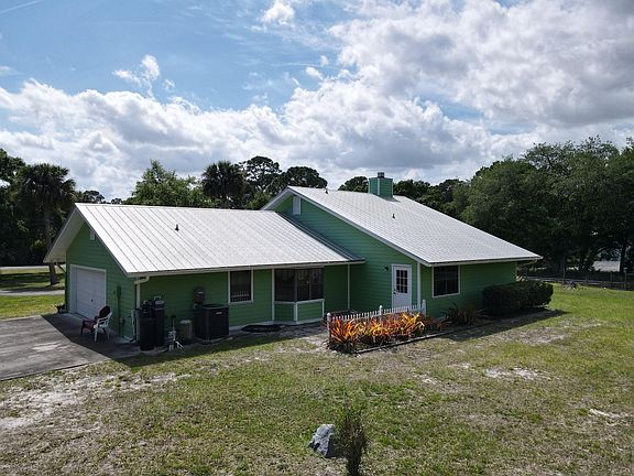 Welcome home!!! Beautiful 3 bed 2 bath 2 car garage home on 1.25 acres in western St.Lucie county. West of Kings Hwy and North of Hwy 70 makes this a perfect location for commuters via 95 or the turnpike. The exterior of the home is nicely landscaped and offers a circular drive, quaint front porch, metal roof and a small shed. Beautiful oaks adorn the property. Exterior was repainted in 2022 and a new AC system installed. The kitchen offers nice wood cabinetry and granite countertops. Centerpiece of the living room is a large stone gas fireplace supplied by an underground propane tank. Large master suite features a walk-in closet, ensuite bathroom with his and hers sinks and dual shower heads in the spacious shower. Extra bonus room off of the dining room is great for expanding.