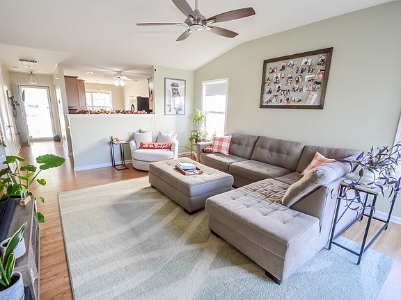 Come check out this three bedroom, two bath home located in a quiet neighborhood. The spacious living room is open to the kitchen creating the perfect flow. The hallway has newly hung board and batten that adds a touch of charm. The primary bedroom offers a walk-in closet, allowing ample space and organization for your belongings. Enjoy entertaining as you walk out to the back patio, and a fully fenced in yard overlooking a pond. So much to love about this home!