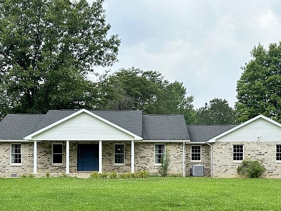 That one perfect Ranch House! This perfect home sits perched up on top of the hill, surrounded by trees, and nestled inside it's 5 acres. All of these things add up to a hefty dose of serenity and calm that your daily life has been waiting for. A one floor layout makes it easy living for sure. This 3 bedroom 2 bath home has a dedicated (and spacious) master bedroom with it's own master bathroom and roomy closet. There are also two more nicely sized additional bedrooms and another full bath. The great room has vaulted ceilings, hardwood floors, and offers access to either the covered front porch or, when passing through the formal dining area, a multi-season sun room. Plenty of cabinet space and storage in the kitchen with counters surrounding and a TALL pantry cupboard area. Bonus storage can be found in the utility room as well as inside the laundry with it's additional cabinet space. The attached two car garage is HUGE!! Plenty of room for more than just you daily drivers. Of course I can't forget to mention that steel walled/framed bonus building! Towering in the rear of the property, this bonus space has a concrete floor, electric, water at the outside corner, and high bay roll-up doors too.