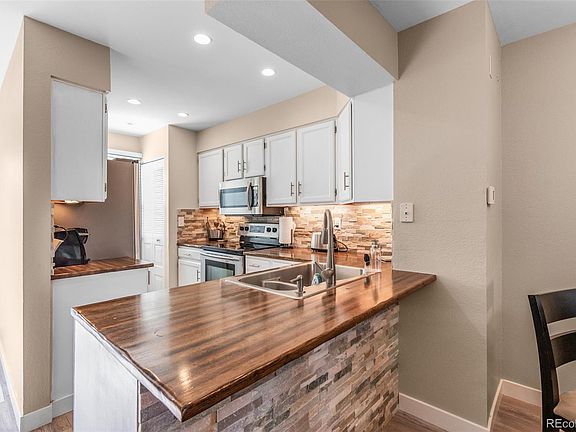 A beautifully remodeled town home that is a short walk to Downtown Parker's restaurants, shops and O'Brien Park. As you enter the property you see the open floor plan and your eye is drawn to the stone fireplace. The main floor has laminate wood floors. The beautiful kitchen has stainless steal appliances, stone back splash, and wood counter tops. A peninsula divides the kitchen from the eating area and living room with gas fire place. The second floor has an updated bathroom, Master bedroom with double closets and vaulted ceiling, and a 2nd bedroom. In the partially finished basement you'll find another 3/4 bathroom, a non-conforming bedroom, laundry and plenty of storage. The back of the home has a nice fenced in patio area. There is 1 reserved parking space and several visitor parking spaces near the unit. This a move-in-ready home!