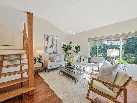 Welcome to your canyon haven! This exceptional corner unit townhome offers a perfect blend of style and functionality. Step into your private oasis with a newly installed pergola, creating an inviting outdoor space. There's a new concrete patio and fence installed as well. Inside, discover a gourmet kitchen that has been tastefully remodeled, featuring a sleek island and underlaid lighting on cabinets and the island. The integration of Alexa light capabilities adds a touch of smart home convenience, allowing you to control lighting with just your voice. A formal coat closet and bench at the entry create a welcoming atmosphere. Two parking spaces, one covered and one uncovered. Just outside your doorstep are beautiful walking trails and run into the canyon. Other community amenities include a clubhouse, pool, and tennis courts. The living room boasts tall ceilings, adding an airy and spacious feel, while dual pane windows throughout flood the interiors with natural light. Ample storage, both interior, and exterior, ensures a clutter-free living environment. There's a half bath downstairs. Central AC and heating, complemented by a whole house fan for energy-efficient ventilation. Centrally located with easy access to amenities, schools, and parks, this home is a seamless combination of modern luxury and practical living.