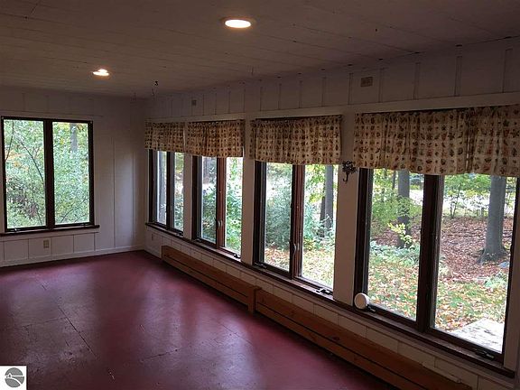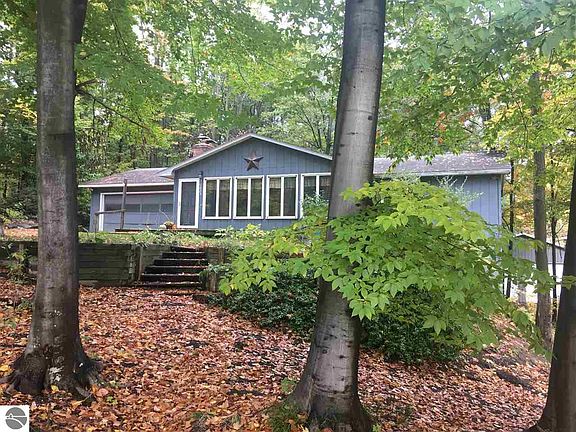 Lovely large home in quiet Suttons Bay neighborhood. Set on beautiful tree-covered parcel, this charming home comes with heated front sunroom, new carpet throughout main floor, and possible apartment on lower level with separate entrance and drive. Lower level also has 4th nonconforming bedroom. Included w/ the house is a 1300SF pole barn w/ separate junction box for energy efficiency, an attached front office, and 13ft ceiling w/ space for auto lift. Has electricity, heat, hot-water, airline throughout, a 220 volt outlet, and 110 volt outlets approximately every 7ft. Plenty of storage space as well.