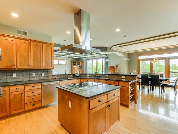 Stunning 5BR, 4BA walk out rambler on over 2.5 acres! Spacious layout throughout. Tons of kitchen storage. Attached and detached garage fits 5 cars, heated & insulated. Beautiful deck and patio overlooks huge backyard with waterfall, playhouse, swingset and treehouse! Large bedrooms. Walk-in closets. In-floor heating heating in basement. Surround sound throughout house and deck.