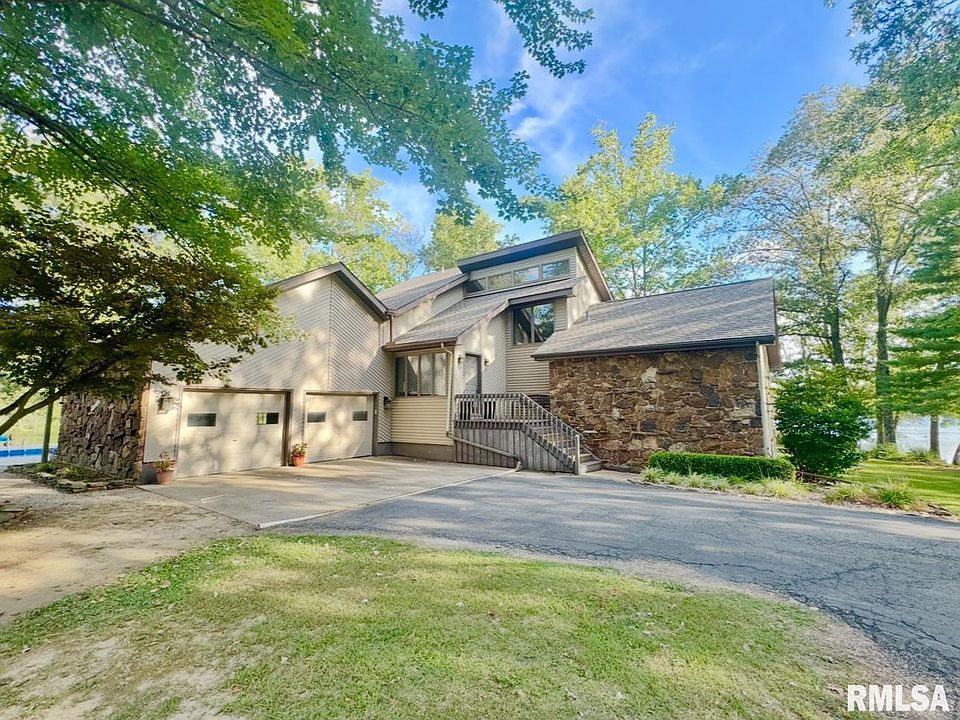 Where stunning design meets endless shoreline! Wake up to panoramic lake views from nearly every room in this 4 bed, 3.5 bath Lake Moses estate. Set on 1.5 private acres with shoreline wrapping around three sides, the home invites you to step outside to your own wrap-around dock, perfect for morning coffee or sunset strolls by the water. Inside, hickory hardwood floors and cathedral ceilings create an open, welcoming feel, while walls of windows fill the home with natural light and breathtaking views. Imagine cozy evenings by the grand stone gas fireplace as the lake shimmers just beyond the glass. Attention to detail is found throughout, blending comfort with timeless design. A brand new roof (July 2025) ensures peace of mind, while the saltwater heated pool overlooking the lake offers a resort-like retreat in your own backyard. This is more than a home, it is a lifestyle of relaxation, elegance, and unforgettable moments on Lake Moses.