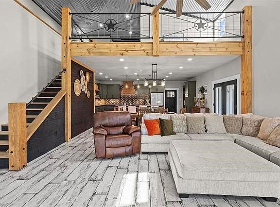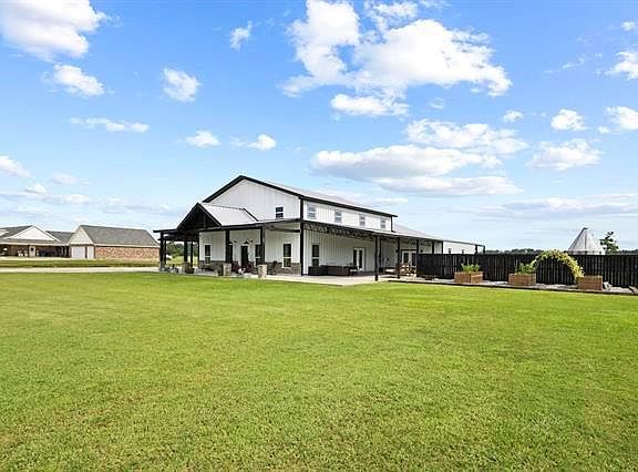 Country living at it's finest! This one of a kind custom built home will WOW you! Nestled on 2.4 acres of land located out of the city limits. Fully stocked pond for all the fishing you would like! This property is crafted with extreme attention to detail throughout the home. From the curb appeal to the inside this home blends rustic charm with modern elegance! Every inch of this home has been thoughtfully designed from the iron hand rails to the custom wood beams. You will love the soaring ceilings, high-end finishes and top of the line appliances. The kitchen is the heart of the home featuring custom cabinetry, real brick for the back splash, floating shelves, and the handmade kitchen island which is divine! The primary suite is downstairs and has such character. The spa inspired custom bathroom features a deep soaking jetted tub framed with rich natural wood. If you need a mother n law suite this home has a fully functional move in ready1 bedroom 1 bath suite. Move in ready!