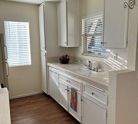 Super nice updated condo in Mira mesa. Bright and clean unit on desirable ground level. Dual Master suites with separate bathrooms (one tub, one shower). Each bedroom with large mirrored closets and ceiling fans/lights, new luxury vinyl floors throughout. Black out curtains in one bedroom. New vanities and faucets . New large shower door, new shower heads. New vanity mirrors. Washer/dryer in unit. AC/Heat. Move in ready. Blinds to all windows. Microwave, gas range, garbage disposal, Bosh dishwasher & new fridge. Covered private patio with secure storage closet. Complex features large community pool/spa, gym, dry sauna and large capacity washer and dryers. One dedicated covered parking space and one open space parking. Great central location! Close to Qualcomm, Sorrento Valley and UCSD. Walking distance to shopping and dinning. Nearby schools. Application fee $ 53.95. Security Deposit $2800. Renters insurance. Water and grounds maintenance fee are paid and included in rent. Small pet allowed with additional $100/ month and additional pet deposit. Renter pays for all utilities. No smoking.