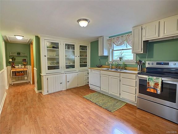 Welcome to 10889 Bodine Road. Located in desirable Clarence Hollow, this updated Farmhouse boasts 1,371 square feet with two spacious bedrooms and updated full bath. Great curb appeal with vinyl siding and newer roof. Large open front porch invites you inside to an abundance of natural lighting and replacement windows. Formal dinning room plus updated eat-in kitchen. Convenience of 1st floor laundry. Additional improvements include HVAC, electrical service, and plumbing. Walking distance to park, shopping, and dinning. Affordable taxes and highly rated schools, negotiations begin 6-29-21. Easy to show! 2021-08-10