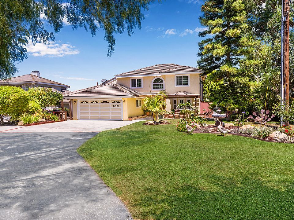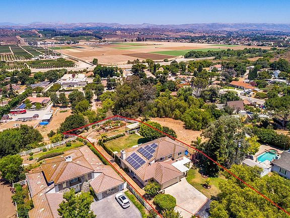 Welcome to Home Acres! This incredible Moorpark Estate is not only, exactly what you've been dreaming of... but has a view you must see to believe! Turn on to the private drive and you're greeted by over 1/2 an acre of your very own storybook like grounds. Property completely fenced. Expansive front yard w/a tree that is said to be over 100 years old, 17 fruit trees grace the grounds, a horse stall out back w/a well ridden path along the side of the house, veggie garden in full bloom w/12 beds and drip lines. SOLAR, that is paid for! Fully permitted addition put on in 2001 - includes laundry room with a LAUNDRY CHUTE and Dutch door, Family Room with Fireplace, additional attic space and add'l garage space. Living Room at front of house - could also be the perfect home office space or classroom-at-home space OR both! The house and the grounds offer so much space... you will fall in love with the possibilities. All bedrooms upstairs. Primary bedroom has a walk-in closet and Primary Bath has separate shower and tub. 2nd and 3rd bedrooms have extra space due to the addition - the perfect work or play space! Home is on septic. AC unit has an ultra-violet filtration system. Front door has vented sidelites. Recessed lights, tile, wood and carpet floors.