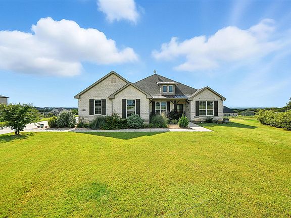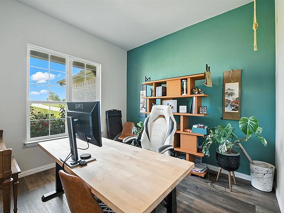 Imagine enjoying the breathtaking sunsets from this expansive backyard! This stunning home offers an inviting open floor plan, perfect for both everyday living and entertaining. The spacious living area is centered around a stylish TV wall and fireplace, creating a warm and welcoming focal point. The chef’s kitchen features gorgeous granite countertops, abundant cabinetry, and a convenient butler’s pantry as well as large pantry. The luxurious primary suite boasts a spa-like en suite bath and a generous walk-in closet. Well-sized secondary bedrooms are filled with natural light and are split from the primary bedroom, while a large dedicated office provides the ideal space for working from home. Step outside to a beautifully sized backyard with a covered patio — the perfect spot to relax and enjoy the outdoors and the beautiful sunrise and sunsets. This beautiful is situated on a 1 acre lot in a beautiful subdivision!