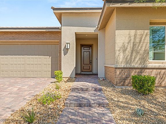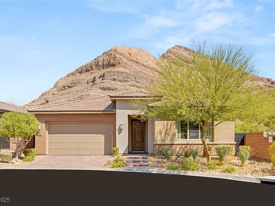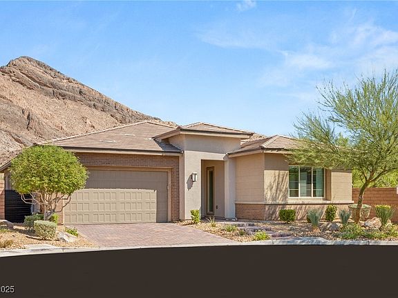 Welcome to 10890 Red Yucca, located in the guard-gated Reverence community of Summerlin. This elevated homesite offers stunning mountain views, a fully landscaped backyard, and enhanced privacy with only one neighbor and greenbelt to the side and rear. This Trieste model features 3 bedrooms, 3 bathrooms, and a spacious open-concept great room. Interior highlights include 10’ ceilings, 8’ doors, and full-length sliding glass doors. The kitchen features a large island with breakfast bar, granite countertops, a 5-burner gas cooktop, vented hood, stainless steel appliances, breakfast nook, 42” cabinetry, custom backsplash, pendant lighting, and reverse osmosis system. The separate primary suite offers mountain views, a ceiling fan, and a generous 10’x9’ walk-in closet. The en-suite bath includes dual sinks, a garden tub, and walk-in shower. Bedroom 2 has its own en-suite bath and 9’ walk-in closet. Residents enjoy access to the clubhouse, pool, fitness center, pickleball courts, and more!