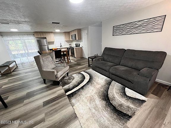 BACK ON THE MARKET (finance fell through). Looking for a brick house on the northside of Jacksonville? This is a newly remodeled 3 bed/2ba home with easy access to I-95 & I-295 and the Jacksonville airport. The house comes with new flooring, modern open floor plan, beautiful kitchen with new cabinets and quartz countertops, new LED light fixtures, updated bathrooms with new vanities and toilets, inside connections for laundry room with an extra fridge and plenty of space for extra shelving for a pantry. Sliding glass doors leading to the screened in Florida room. Spacious fenced backyard, detached garage with plenty of storage space, shelves and work bench plus additional washer and dryer connections. Maybe convert it to a Studio / rental apt? Freshly painted inside and out. The best part? Brand new roof! Schedule your appointment today!