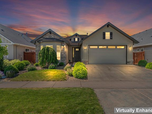 Welcome to your dream home in the desirable Hazelwood Village subdivision in Boise! This community offers two community pools (one is 3 doors down from home), clubhouse, and playground. This stunning turn-key 3bedroom, 2 bathroom home offers a perfect blend of comfort, style, and convenience. Step inside to discover a bright and airy interior with abundant natural light throughout. The heart of the home is the spacious kitchen, featuring a large island that is open to the living room, perfect for entertaining. The master suite boasts a large walk-in tiled shower, and spacious walk-in closet with dual access to the master bath and laundry. Outside, enjoy the maintenance-free yard and relax on the covered patio with no rear neighbors for added privacy. Epoxy finished garage. Home has been recently professionally cleaned and HVAC has been serviced. Close proximity to Lake Hazel/Five Mile Rd. Amenities.