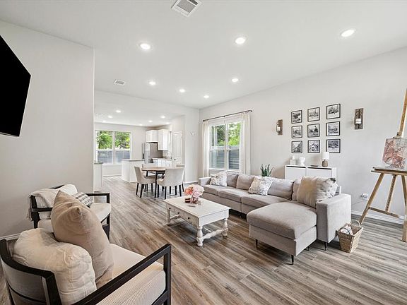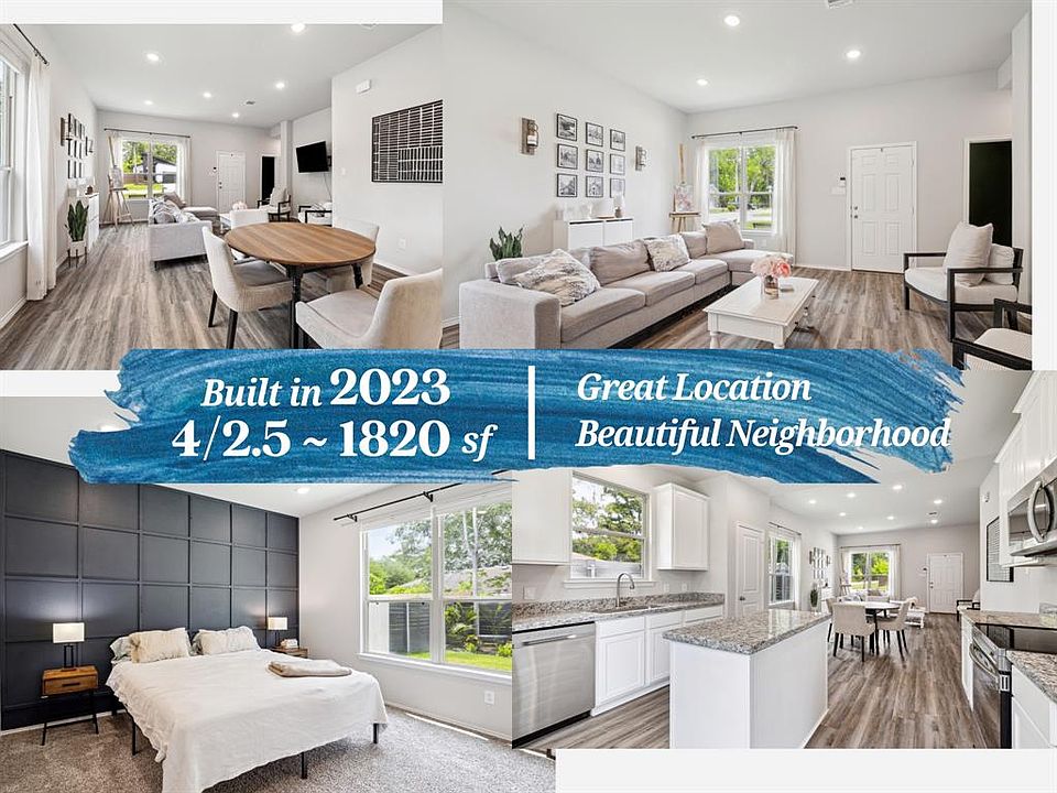 Nestled on the corner of a peaceful cul-de-sac in the serene, wooded neighborhood of Lake Chateau Woods, this barely lived-in gem offers both seclusion amid nature and a sense of community. 10' ceilings and LED lighting throughout enhance the bright, airy first-floor living layout, which includes laundry room & primary suite with ensuite for ultimate convenience. Primary suite features stylish accent wall & boasts a spacious ensuite with double sinks, seated vanity area, & an expansive walk-in closet. Upstairs, three generously-sized secondary bedrooms provide ample space, including one exceptionally large room that could serve as a second primary suite. The kitchen showcases stainless-steel appliances, 42" soft-close upper cabinets, and granite countertops, and overlooks the beautifully landscaped backyard oasis with raised herb and vegetable gardens. This is a rare opportunity to own a nearly-new, tranquil haven of this size while remaining affordable in this desirable neighborhood.