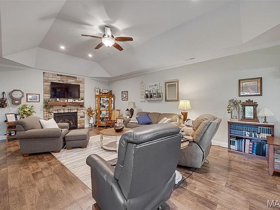 Beautiful custom-built 3 bed, 2.5 bath home situated on 26.63 acres just outside of Potosi! This property features approximately 9 acres of open ground, ideal for recreation, livestock, or a potential pond site. Inside, you'll find 9-ft walls and luxury vinyl flooring throughout. The custom kitchen boasts granite countertops and a walk-in pantry, opening to a spacious living area with a cozy gas fireplace.