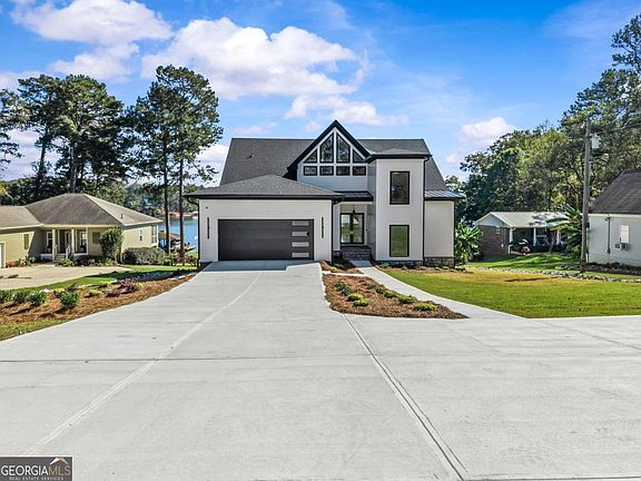 Welcome to 1089B Crooked Creek Road. Discover the perfect blend of modern luxury and timeless design in the new lakefront construction masterpiece on the coveted shores of Lake Sinclair. This expansive 5 bedroom, 5 full bath, 1 half bath home is thoughtfully designed for effortless entertaining and relaxed everyday living. Step inside to soaring 28 ft vaulted ceiling in Great room showcasing meticulous craftmanship at every turn--wooden beams, custom tiled fireplace, custom cabinetry, modern lighting and full wet bar. Main level features a serene primary suite w/ fireplace, extra large shower, soaking tub and walk in closet w/ custom shelving. Loft level offers 2 additional bedrooms with 12 ft ceilings, ensuite baths, closets w/ custom shelving and generous finished space. Terrace level features a large family room w/ 10 ft ceilings, wet bar w/ full refrigerator, laundry room and 2 additional bedrooms with expansive lake views. Open concept layout seamlessly connects the gourmet kitchen, living and dining areas, all adorned with modern fixtures and designer finishes. Outdoors your private resort style oasis awaits. Relax on the covered porch overlooking beautifully landscaped grounds. The new max boathouse and seawall make boating, fishing, and lake days effortless. Perfectly situated minutes from Crooked Creek Marina, this home offers and unbeatable location and lifestyle. Whether you are searching for an extraordinary primary residence or a remarkable second home investment in the rapidly growing Lake Sinclair market, this property checks all the boxes. Home also features a 3 story elevator for convenience. Schedule your private tour today and experience lake living redefined. Owner is Licensed Real Estate Agent in Georgia.