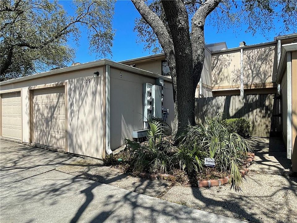 Last Condo Available For Sale! This Beautiful 3 bed/2 bath Condo Features an Updated Kitchen w/ Granite Counters and Stainless Steel Appliances, Wood and Tile Floors Downstairs, Large Den PLUS Separate Living Room BOTH leading out to separate, private Courtyards (TWO - 1 in Front/1 in Back), NEW Washer & Dryer IN UNIT, HUGE Primary Closet, & Detached Garage/Workshop. Condo Fee includes Exterior Insurance, Common Area Maintenance, Termite Contract, Property Management, AND Flood Insurance!!