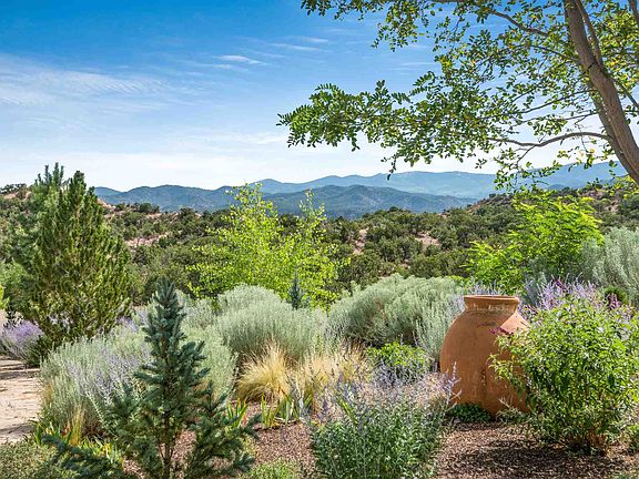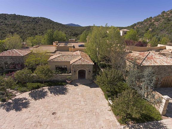 Exceptional 6 bedroom 7 bath custom-designed and built residence and guesthouse expertly sited on over 16 acres in the prestigious gated community of Tesuque Ridge Ranch. Includes 2 adjacent parcels, each over 5 acres. An air of grandeur pervades the nearly 14,000-square-foot manor, yet every space is warm and welcoming. The heart of the home is a generous kitchen and den with a fireplace, a breakfast area, an adjoining portal, and an awe-inspiring view of the Sangre de Cristo mountains. The thoughtful design includes magnificent formal living and dining rooms, a handsome library, and private bedroom wings for owners and guests. Surfaces of lustrous plaster and cool antique Jerusalem stone contribute to the regal ambience, while earthy reclaimed walnut, hickory, and mesquite add warmth and depth. A third-generation German stonemason crafted mantels for the home’s 13 fireplaces. Enveloping the residence are a number of phenomenal outdoor living spaces, each of which has been positioned for the utmost enjoyment of the views and tranquil surroundings. In addition to the main residence, there is a detached two-bedroom guesthouse. This is an ideal property for reunions and large-scale entertaining. Highlighted features include a finished basement, oversized 3-car garage and mature landscaping. A serene location in the foothills north of Santa Fe yet only minutes to the historic Plaza, the Opera and Canyon Road.