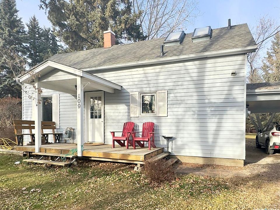 Welcome to this delightful 2-bedroom, 1-bathroom home nestled in the friendly community of Waldheim, just a short 30-minute drive north of Saskatoon. The bright, spacious kitchen serves as the heart of this home, featuring modern stainless steel appliances, generous cupboard and counter space, and a practical butler's pantry. . The dining room features an attractive exposed brick chimney and a pass-through opening to the living room. The main floor accommodates one bedroom plus a versatile den that can easily function as an office, storage area, or third bedroom. Upstairs, the inviting loft features two skylights, maximizing natural light. This flexible area includes an additional bedroom and offers excellent potential for a studio, home office, or recreational space. Enjoy privacy and tranquility in the large yard, framed by mature trees and shrubs, offering an ideal setting for gardening, entertaining, or simple outdoor relaxation. The location is unbeatable: steps away from the local golf course and only one block from the K-12 school. This affordable home is an ideal fit for first-time buyers or anyone looking to downsize. It won't last long—schedule your tour today!