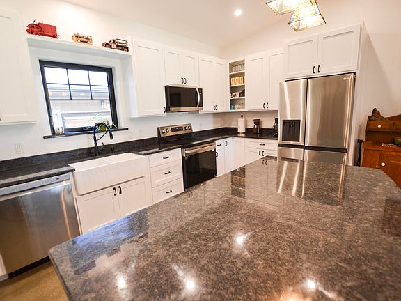 This high-end home is only a little over a year old. Built in 2024, this home features single level living, with an upscale kitchen featuring solid granite counter tops, custom cabinets, deep double farmhouse sink, and a large island with breakfast bar. The primary bedroom is good sized with a beautiful double sink vanity with solid countertops and a soaker tub with custom tile work. Main living room has a gas fireplace and French doors out to the patio. The home also has an additional bedroom and an office. This home also has radiant in floor heat and air conditioning; the attached heated 2 car garage is a huge plus.