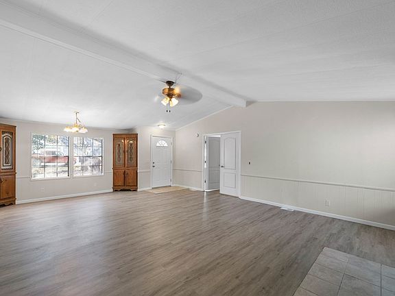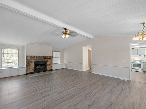 Welcome home to this charming 3 bedroom/ 2 bath double wide manufactured home . Situated on almost half an acre, this lot features plenty of mature trees. A lovely brick fireplace invites you in with built ins on either side offers ample storage. Featuring all vinyl, and wood laminate flooring, this home is move in ready. The island kitchen offers plenty of cabinet space and room to cook with your family! There are two living areas, so you have plenty of space to entertain. The Primary Bedroom features a walk in closet, and en-suite bathroom which features a relaxing garden tub and large walk in shower. The minor bedrooms are well appointed and feature lots of natural light. A detached 2 car garage is the perfect place to store your cars, or make a workshop. Don't miss out on this amazing home, schedule your showing today!