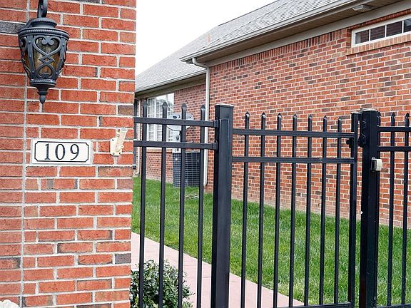 Gorgeous all brick, one level home located in a small development. Spacious open floor plan with large great room, lots of classy moldings, volume ceiling, gas log fireplace, nice windows with custom blinds. No carpet in here! Seller recently installed a very nice wood/laminate flooring throughout. Additional living space in the recently enclosed wrap-around porch for all-season use. Beautiful kitchen with loads of elevated height cabinetry and recently added quartz countertops plus some glass door display cabinets. Multi-purpose room makes a great dining room, office or den. Master suite includes a large private bath with pocket door, jetted tub and large separate shower. Second bedroom is spacious and convenient to bath. Large 2-car garage with attic storage with pull down stairs. Yard is extensively landscaped, is fenced and has nice patio. Front entry has additional space for seating area. Very convenient location!!