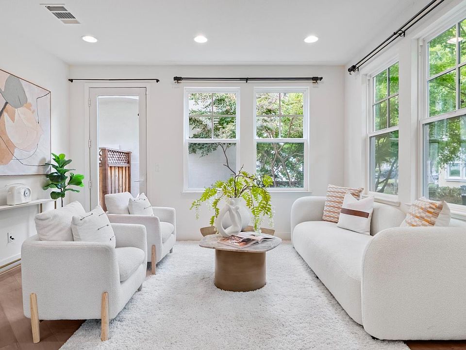 Stunning SFH w/ plenty of natural sunlight at a prime location in a sought-after neighborhood. This 4b3.5b SFH w/ 2 PRIMARY SUITES on SEPARATE LEVELS and an EXTRA OFFICE/GYM AREA is perfect for family or young professionals. The open layout of the ground level features chef's kitchen w/ a large island, beautiful cabinets & countertops and s/s appliances. Spacious dining & living area w/ plenty of natural sunlight and opens to a PRIVATE SIDE YARD. Master suite on 2nd floor w/ double-sink vanity, both bath tub & stall shower, walk-in closet plus a private BALCONY. Another master suite w/ private full bath & walk-in closet on the 3rd floor for maximum privacy. EXTRA SPACE for OFFICE/GYM/FAMILY ROOM provides lots of flexibility. SOLAR SYSTEM installed for monthly electricity savings. Recessed lights throughout. Central heating & AC. A community park w/ playground right outside and more parks within walking distance. SUPER CONVENIENT LOCATION: Walk or bike to a variety of tech companies incl. Google buildings, Linkedin, Waymo, JD, Synopsis, Samsung, etc. Bike on a trail to Google HQ. Minutes to downtown Mountain View, Caltrain, Shoreline Amphitheater. Easy access to HWY 237/101/85 and Central Expy. Low HOA and top rated schools!
