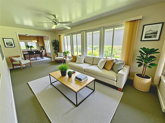 One or more photo(s) has been virtually staged. Discover this beautiful and unique home nestled at the end of a quiet cul-de-sac in the sought-after Hawthorne at Leesburg. Enjoy breathtaking 180-degree panoramic views of the river from the comfort of your spacious Florida Room, fully enclosed under heat and air for year-round enjoyment. This well-maintained home, ready for occupancy, features a long driveway with a dedicated golf cart pad and awning, offering plenty of parking and convenience. The upgraded vinyl siding adds to the home’s clean curb appeal, while the roof has been carefully maintained and the HVAC system was completely replaced in 2019 for peace of mind. Whether you’re relaxing in the expansive living space, taking in the river views, or enjoying the community’s amenities, this home offers comfort, space, and a truly special setting..........Hawthorne at Leesburg is an active, resident owned, 55+ cooperative, waterfront, gated community, with beautifully landscaped grounds, lakes with illuminated fountains and a relaxing and comfortable gazebo. The affordable monthly maintenance fee of $346 includes water, sewer, lawn mowing, private emergency services and storage space for recreational vehicles, boats, trailers and much more! The beautiful clubhouse is complete with a full-time program coordinator, more than 100 different activities and seating for 550. It has a hospitality lounge, card rooms, craft rooms, billiard room, fitness center, library, fine arts room and many more. There is excellent fishing, outdoor geo-thermally heated pool and two enclosed therapeutic pools. Hawthorne boasts a private marina monitored by an electronic security system with over 120 boat slips and access to the Harris Chain of Lakes and beyond.