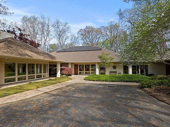 Custom European inspired home in Sought After Collins Creek. Tucked away on a lush and private 1.2 acre lot in the prestigious Collins Creek neighborhood. this custom, one-owner home is a rare find. Impeccably maintained and thoughtfully designed, the European-style architecture sets a timeless tone from the moment you arrive. A circular drive, mature trees, and vibrant gardens welcome you into a tranquil retreat that feels world away--yet you're just minutes from the heart of Greenville. The highlight of the home is the all-glass atrium, complete with fireplace. Whether used as an art studio, sunroom, or hot tub haven for the kids, this light filled space is a showstopper. Inside, the main level offers ideal functionality with the primary suite and a second bedroom, perfect for guests or grandkids. Downstairs, the walk-out lower level features four bedrooms, two full bedrooms, and a spacious recreation room--a perfect setup for multigenerational living or guests. Extra storage is another plus. Multiple patios and covered walkways surround the home, offering countless spaces to relax, entertain or simply enjoy the beauty of the natural surroundings. A heated and cooled workshop adds even more flexibility, while an extra large carport ensures you have plenty of covered parking. The gas logs in the fireplace are non-functional. Located just 10 minutes from Downtown Greenville, residents of Collins Creek enjoy close proximity to award winning restaurants, local boutiques, hospitals, top rated schools, and outdoor destinations like the Swamp Rabbit Trail and Falls Park on the Reedy. If you're looking for a one-of-a-kind home that offers privacy, space and character in one of Greenville's most desirable communities 109 Babbs Hollow is it!
