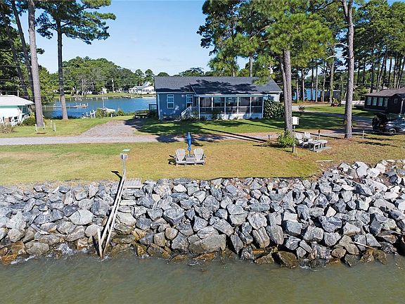 Wow! Incredible views of the Chesapeake Bay. This special home built in 2020 offers wide southern vistas from a spacious front screen porch. A unique offering consists of 4 original Fleeton Beach lots combined into one. This newer home was built across lots 13,19 & 20 with the additional waterfront lot #9 completing the package. The versatile location of this home also includes direct water access to the protected Taskmakers cove located directly behind the house. Major features include a spacious primary ensuite bedroom with walk-in closet, complimented by two guest bedrooms, second full bathroom and a large laundry room. Great room and kitchen combination offer a perfectly relaxing setting with ceiling fans throughout each room. Additional side door opens conveniently into driveway. Entire waterfront is recently heavily riprapped to include stone steps down to the water and small sandy beach at lower tides. The home has its own artesian well and is serviced by county sewer.
