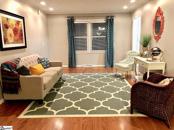 Large remodeled Devenger home on a private cut de sac lot. 4 bedrooms and 2.5 bath and side entry garage. Enter the front door to the foyer with formal living and dining rooms on each side. Walk the hall beyond the half bath and you will find a large den with a wood burning fire place and windows looking at the treed yard . Step out of the den to the screen porch and enjoy the privacy it offers. The updated kitchen has ceramic tile, stainless appliances, granite tops, large pantry and eat in breakfast area. The laundry not only has space for washer/dryer but also a refrigerator. Upstairs the large master bedroom offers 2 closets and an updated bathroom with 2 sinks, sep tub & shower. There are 3 other spacious bedrooms upstairs and another full bath. The home has vinyl tilt out windows and 5 year old HVAC. The back yard is fenced and has an out building. Excellent location close to I385 and I85 - easy access to downtown Greenville, Greer and GSP.