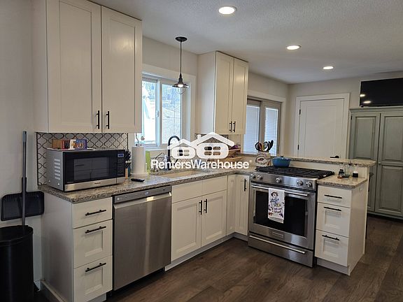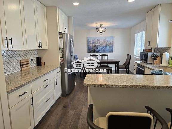 You will love this spacious updated 5BR/3BA split-level home on a private beautifully landscaped lot in the heart of Apple Valley! Deluxe eat-in kitchen w/white cabinets, granite counters, newer stainless-steel appliances including a gas stove, 2 pantries and so much more! A fabulous main floor living room w/brick wood-burning fireplace & built-ins, 3 bedrooms on the main level including the master with a 3/4 bathroom and a full bath in the hallway. There is a spacious family room in the lower level with a 2nd fireplace, a built-in wet-bar, two additional bedrooms, a full bathroom and the laundry room with storage, a sauna and treadmill for tenant's use. This home has a sprinkler system, fenced in backyard and a storage shed! Belmont Park is just a block away! You will be close to top-rated schools, shopping and dining. Tenants are responsible for all utilities as well as the lawn care and snow removal. There is a $60 application fee, a 1x lease admin fee of $199 and a monthly processing fee of $31.95. The security deposit is equal to 1 month' rent and the refundable pet deposit is $400. Sorry but this home is not section 8 approved.