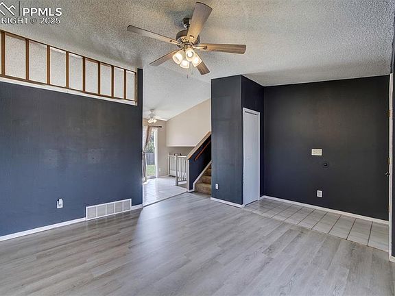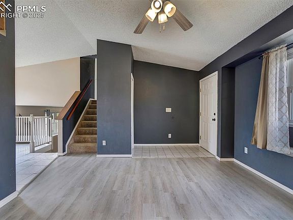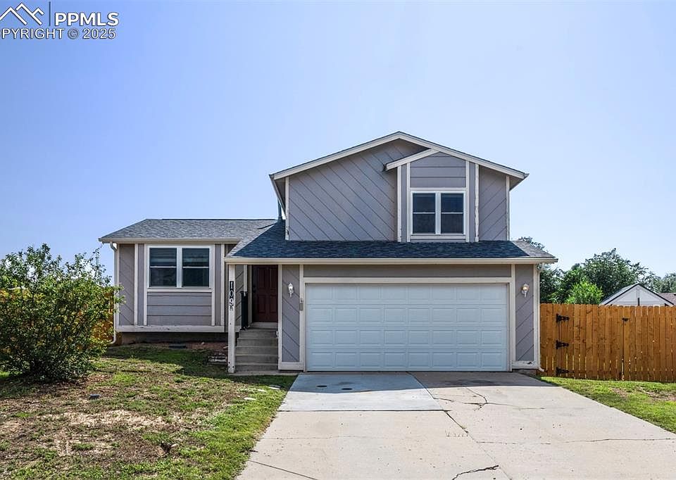 LARGE CUL-DE-SAC LOT IN FOUNTAIN This sweet 3 bed, 1 bath home is ready for a new chapter! Enter the home into your formal dining space with high ceilings & wonderful natural light. The kitchen with quartz countertops & stainless steel appliances. A small eating nook allows for casual dining for two overlooking the living room. The lower level provides your massive living space & garage access. The upper level contains all 3 bedrooms & the shared full bath. The primary suite is ample size and adjoins the full bath/laundry area with full size appliances. A tub shower, single vanity, cabinetry for the bath area & the laundry space gives you plenty of storage in the shared space. Two guest bedrooms are a perfect fit for an office area, guest room, etc. The back lot is massive & craving an owner with a green thumb! Fully fenced rear yard, patio space, storage shed for all your new yard tools. If you’ve been wanting to create your outdoor haven this is your perfect opportunity. This home may be smaller in square footage, but the flow of the home provides plenty of space for a starter home or empty nesters. Come & see this sweet home that has the difficult upgrades taken care of & is ready for your personal touches! CARPET HAS BEEN REPLACED!