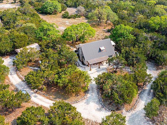 Views when you walk in the door!-Beautiful Hill country Home on 31+/- acres in gated River Bend Ranch Hunt Tx.-Home is constructed of Red Iron steel construction and is within a 1600 acre community- Circular driveway-Hill top views of the Guadalupe River Valley north fork-Private Riverfront access for all river bend home owners that includes covered pavillion, fire pit and outdoor kitchen-The great room has Flagstone wall with wonderful fireplace and double stack cedar mantal-Cathedral American tin ceilings-Galley Kitchen that is functional, efficient and well equipped with plenty of storage- Corian counter tops and a roll out island- Master bedroom has double doors that open up to view the firepalce-Master bath has doule vanitity- with Pedestal tub and two sided shower-Second Floor/ Bedroom can be accessed from a stair way outside and also a spiral staircase inside the home- second floor has full kitchen and bathroom-3rd bedroom has a wonderful view also but can be used as an office if needed-Fiber optics is avaible-Hunting allowed-Horses or livestock allowed-water well 740' deep to the trinity aquifer- barn with its owner electrial meter-31.75 acres is completely fenced with wir