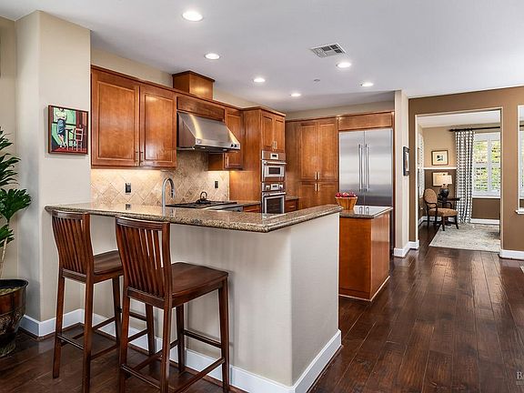 Former model home in Redwood Village filled with designer upgrades, modern systems, and effortless charm. This beautifully maintained property combines timeless craftsmanship with today's smart-home efficiency. Inside, you'll find engineered hardwood floors, 2025 high-end kitchen appliances, built-in speakers, and a Honeywell smart thermostat. Paid solar, EV charging, and a high-efficiency HVAC system with advanced dampers keep comfort and costs in perfect balance. The fourth bedroom has been thoughtfully converted into a custom home office with built-in desk and cabinetryideal for remote work or creative pursuits. The primary suite features a walk-in closet, while the finished garage offers epoxy floors and custom storage. Step outside to a private yard with a custom pergola and designer paversperfect for relaxing or entertaining. Convenient to China Camp trails, Marin's Farmers Market, and an easy 101 commute to San Francisco. A rare blend of design, efficiency, and location.