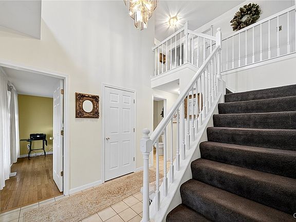 A formal dining room provides the perfect setting for gatherings and special occasions, while a first-floor office adds flexibility for remote work, study, or additional living space. The main level also includes an option for first-floor laundry, with existing hookups conveniently located in the basement if preferred.