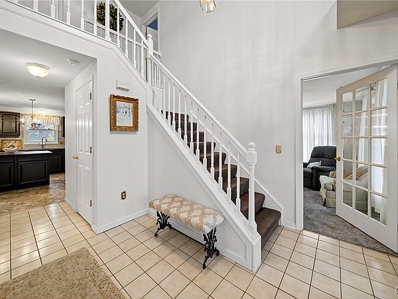 Step outside to a large patio overlooking a peaceful waterfall and pond, creating a serene outdoor oasis perfect for relaxing or hosting. Whether you enjoy morning coffee outdoors or quiet evenings by the water, this setting offers a rare and tranquil backdrop. A two-car garage provides additional convenience and storage.